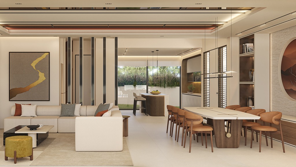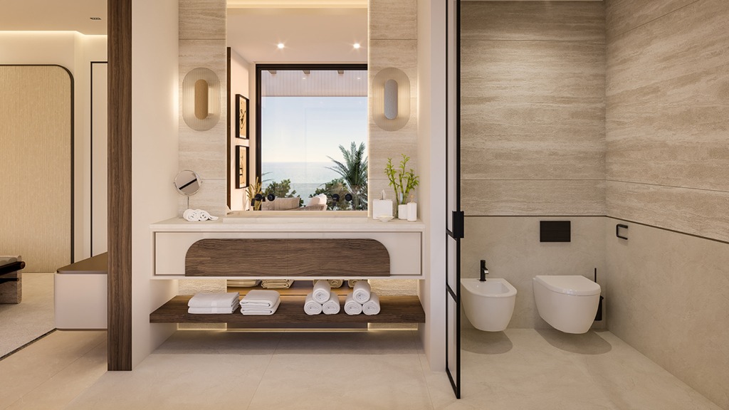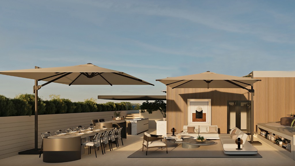 Net als het complex zelf zijn de woningen zorgvuldig ontworpen om een unieke woonervaring te bieden. Daarom bieden we een uitzonderlijk assortiment aan materialen, waaronder porseleinen tegels van topniveau, ruime keukens met hoogwaardige apparatuur, een privézwembad bij elke unit, kamergestuurde warme/koude airconditioning, compleet domoticasysteem, elektrische rolluiken, vloerverwarming door het hele huis, afgesloten garage voor minstens twee voertuigen, pre-installatie voor opladen van elektrische voertuigen en meer... die meewerkten aan het ontwerp van deze ongeëvenaarde nieuwe woningen.
