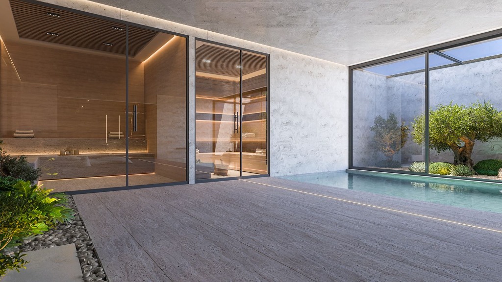Les villas comprennent des espaces de vie ouverts de style contemporain et des cuisines magnifiquement conçues, des suites parentales spacieuses avec dressing et salle de bains, ainsi que des terrasses et des piscines de style moderne, entourées de jardins verdoyants et de murs en pierre massifs.