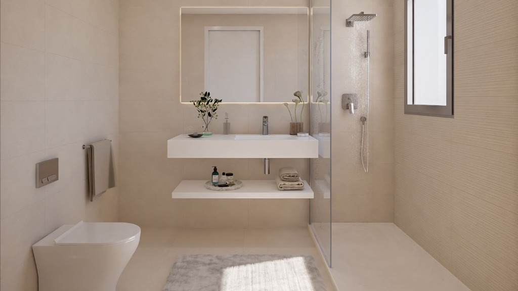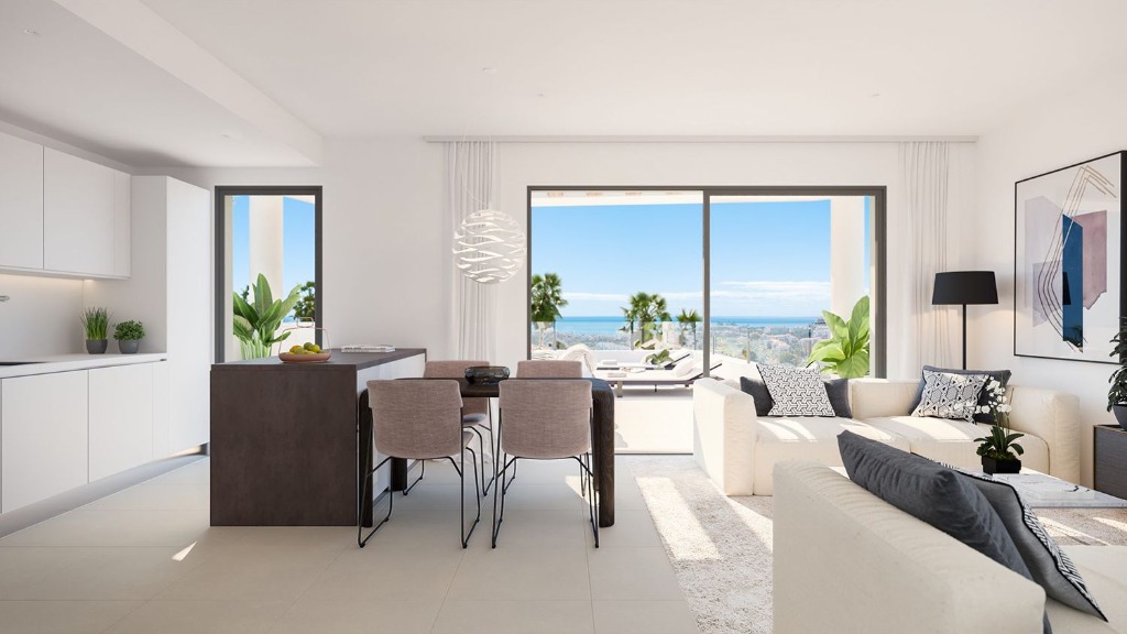 The interior distribution follows a spacious open-plan layout with lots of natural light and everpresent views. Modern, high-spec kitchens with the latest quality appliances complement elegant bathrooms with large step-in showers.