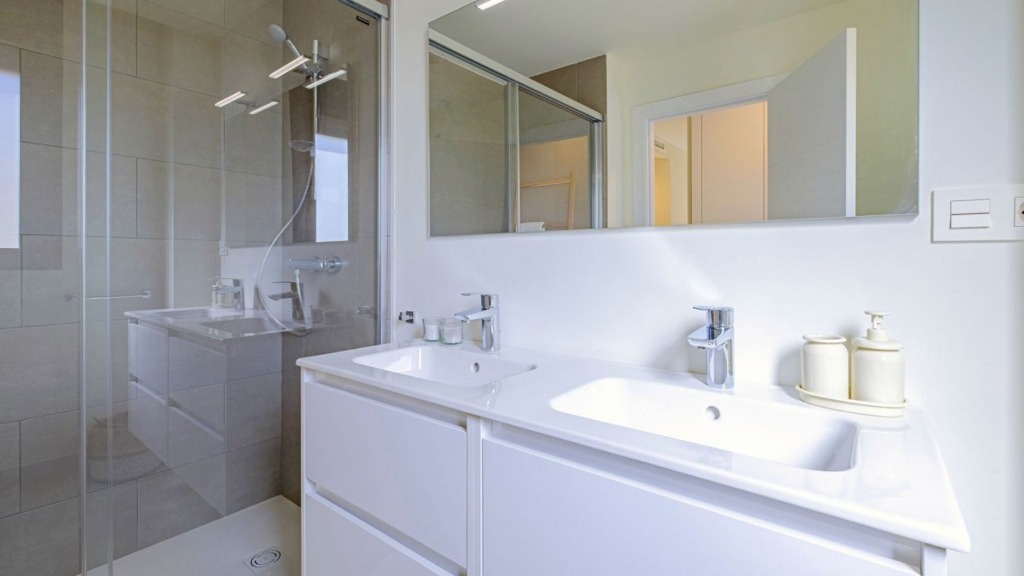 Omheinde gemeenschap met zwembad, tuinen en kinderspeelplaats. Het ontwerp van dit project slaagt erin om de constructie te integreren met de omgeving en optimaal gebruik te maken van de topografie van het perceel voor een adembenemend 360º uitzicht op de zee en de bergen.