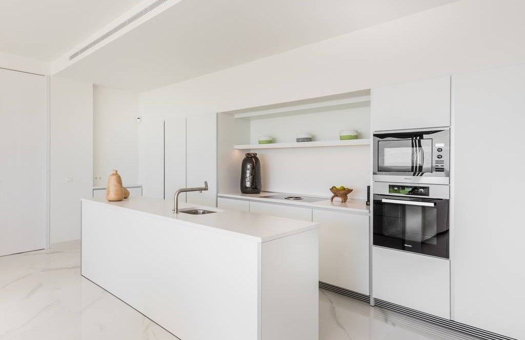 Comfort en luxe zijn de kernwoorden waaraan werd gedacht voor de inrichting van Uw pareltje in de zon. De keuken is van het prestigieuze merk Bulthaup en de keukenapparatuur is van de gerenommeerde merken Miele en Siemens. De badkamers worden ingericht met sanitair van het merk Villeroy & Boch.