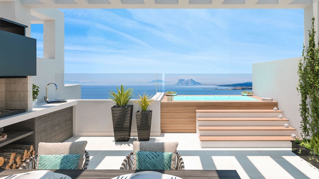 Quiet Living, geniet van spectaculaire zonsondergangen waar gouden tinten en turquoise tinten van de zee opgaan in de horizon en het silhouet van de Rots van Gibraltar en de Marokkaanse kustlijn in de verte benadrukken; allemaal in een bevoorrechte omgeving.