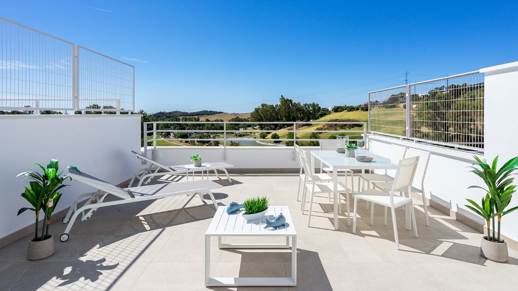 Green Golf is een nieuwbouwproject met slechts 48 rijtjeshuizen, verdeeld over 2 verdiepingen in een particulier wooncomplex, gelegen in Estepona Golf, in het hart van de Costa del Sol.