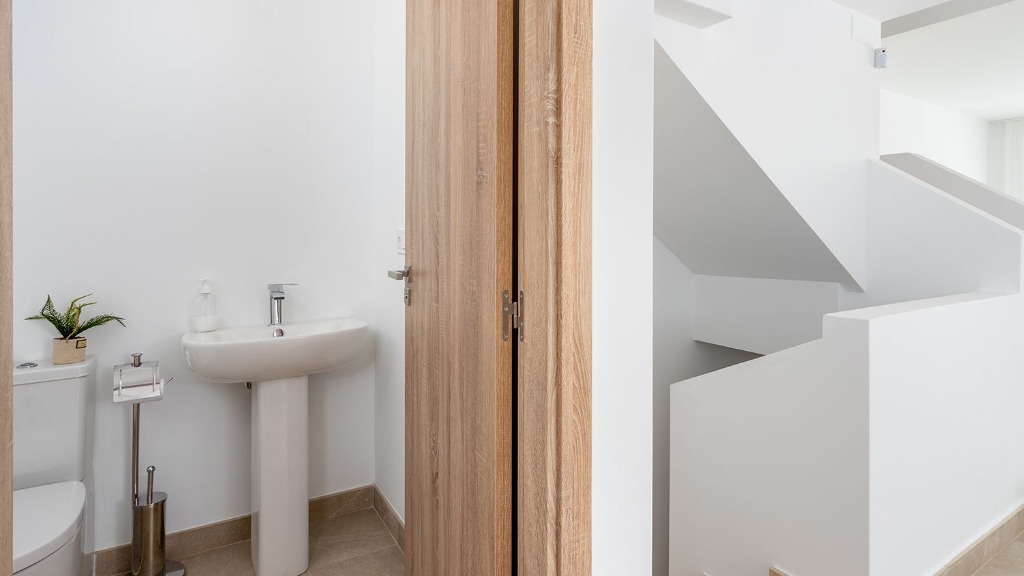 De huizen met 3 slaapkamers hebben 220m2 bebouwde oppervlakte verdeeld over 3 niveaus: parkeerplaats met eigen kelder voor opslag. Eerste verdieping is verdeeld met een open concept keuken, woon- en eetkamer, een gastentoilet en een groot terras. 3 slaapkamers op de tweede verdieping met inbouwkasten en twee badkamers, waarvan een en-suite.