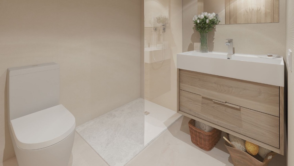 Alle appartementen hebben dubbele beglazing en veiligheidsdeuren. In alle woningen zijn dezelfde keramische tegels van Saloni gebruikt, in groot formaat van 60×60 cm.