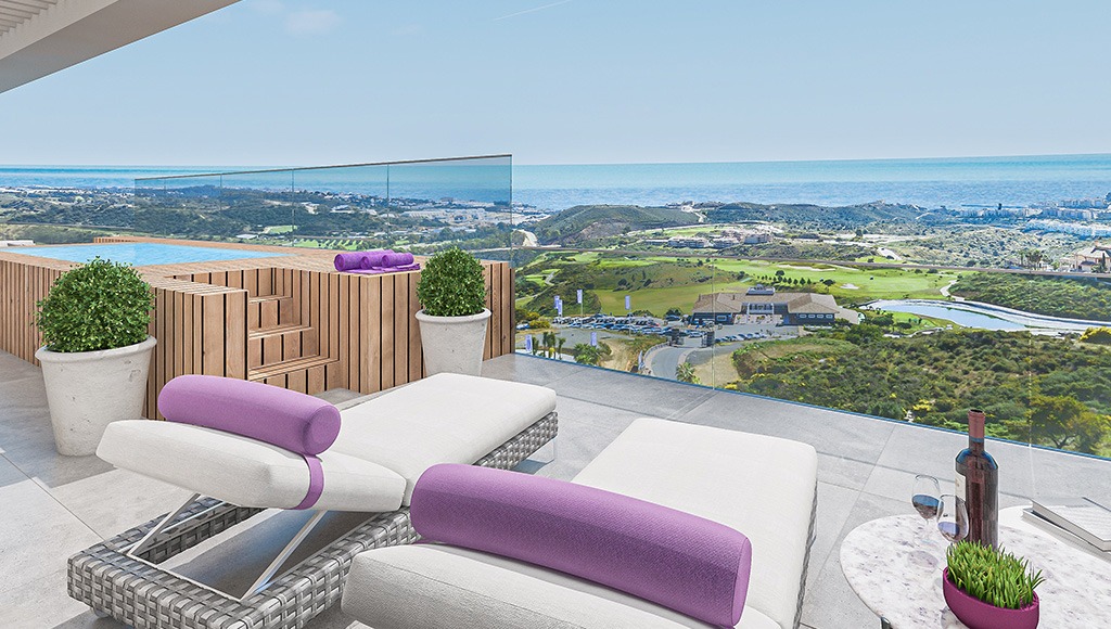 Penthouse terraces give a higher a perspective on life and all of the Mijas Costa! You will feel on top of the world from this elevated position. Terraces are fully plumbed, wired and ready to accommodate all the features you would usually enjoy indoors. This becomes your living room for most of the year. Why not upgrade and add a T.V. to enjoy outdoor screenings, a bar to serve your favourite ice cold drinks or an audio system to provide the soundtrack to your new life?
