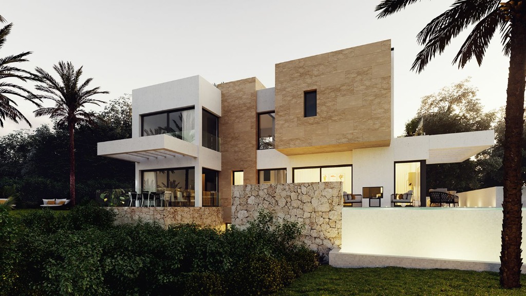 Village El Mirador del Paraiso is a new project of villas that is currently under construction and located close to all amenities including the International School Atalaya and only 10 minutes’ drive to Puerto Banus. Due to their location, the villas have open views of the coast and the golf course and the architectural style is modern with some variations that differentiate them, but still keeps the harmony between all of them. They are all located in such a way to maximize privacy and they are all facing south.